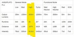 4 spotlight levels, 2 floodlight levels, red light and red SOS