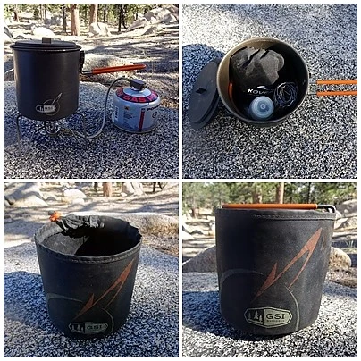1.1 L Pot, Strainer/Sip-It Lid, 14 fl oz insulated mug/bowl, Stove Bag, Welded Sink